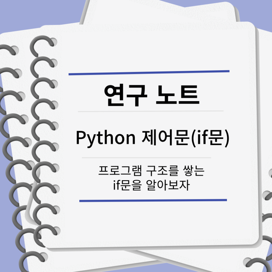 이번 연구 노트에서는 Python의 제어문 중 if문을 알아보았다. if문은 프로그램의 구조를 쌓는 방법의 하나이다.