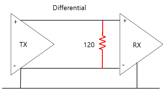 - 끝단에 저항을 연결해서 선로 전체가 일정한 전류를 순환시켜 반사현상을 줄이고 노이즈에 강하게 해줌