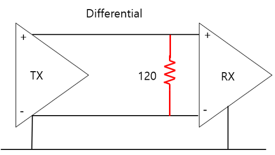 - 끝단에 저항을 연결해서 선로 전체가 일정한 전류를 순환시켜 반사현상을 줄이고 노이즈에 강하게 해줌