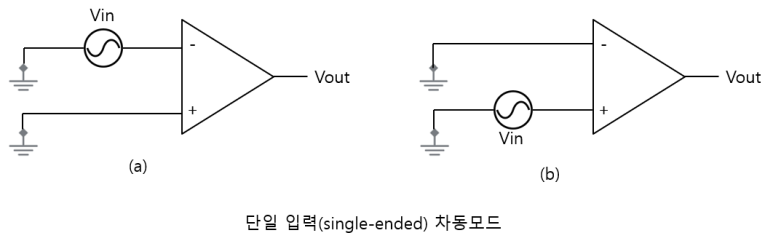 - 입력 신호모드는 연산증폭기의 차동증폭기 입력단에 의해 결정